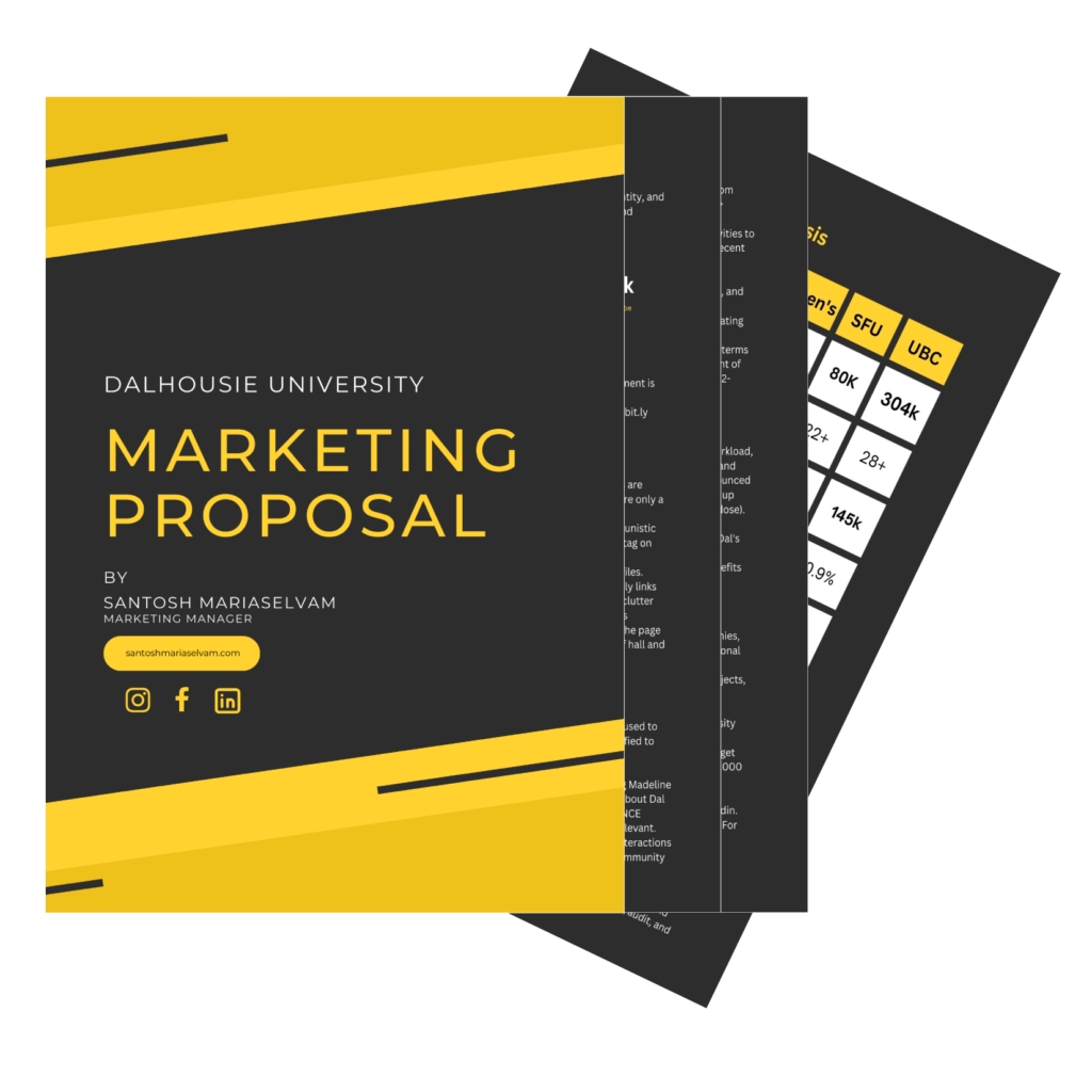 The purpose of the proposal was to showcase a detailed social media analysis and overview of Dalhousie University’s Social Media channels as well as portray my analytical and strategic skills, knowledge of best practices, SEO skills, comparative analysis and presentation skills.